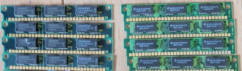 Ekkor látom, hogy a 256-os memóriákon mintha kettővel több láb lenne, de jobban megvizsgálva azok csak üres padok. Mind az 1 Megás és a 256-os memória is paritásos, 9 bites. Ez nem lehetett gond.