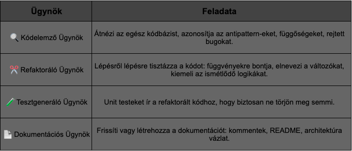 - Alap refaktorálás (AI ügynökök + tesztek): kb. $50–150
