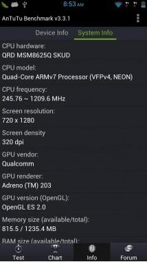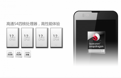 Ami először feltűnhet az embereknek, hogy a telefon kínai, de nem a szokásos kínai SoC került bele (MTK), hanem egy ahhoz hasonló tudással megáldott Snapdragon S4 processzor ketyereg 1.2 GHz-re skálázva (a pontos típusa: Qualcomm Snapdragon S4 8225Q). Röviden: ez egy gyengébb Snapdragon, tehát ne várjunk egy S4 sebességét, de szerintem ez a SoC a mindennapokban elegendő lehet majdnem mindenre.