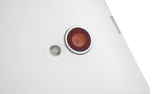 Az előlapon felül semmilyen logó nem található. A legtetején a hangszóró mellett a szenzorpárosok (közelség-fény) és az előlapi kamera, ami 2 MP-re és HD videó felvételére képes. Ami talán különleges, az a alul található egy darab kapacitív gombocska, ami szerintem nagyon szépre sikeredett. Talán a MEIZU megoldására hasonlít (olyan kapacitív iPhone home gombnak tudnám definiálni). A hátulja nagyon egyszerű, legömbölyített formájú fehér műanyag hátlap. Tetején a 8 MP-es kamera, alatta egy villanóval megtoldva, az éjjeli kincskeresők kedvéért.
