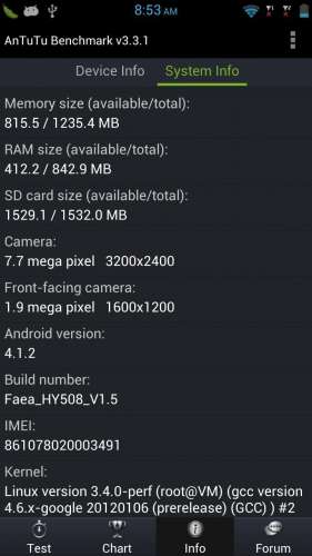 Az Andreno 203 messze nem közelíti meg a Power SGX544 teljesítményét. A RAM mérete 1 GB ami végülis elegendő. A telefonban 4 GB ROM van, amiből a felhasználó 1.5 GB-ot kap meg, de semmi ok nincs a pánikra, mert 32 GB-ig bővíthető a tárhely vagy felhő alapú szolgáltatásokat is hasznosíthatunk, ha ez mind nem lenne elég.
