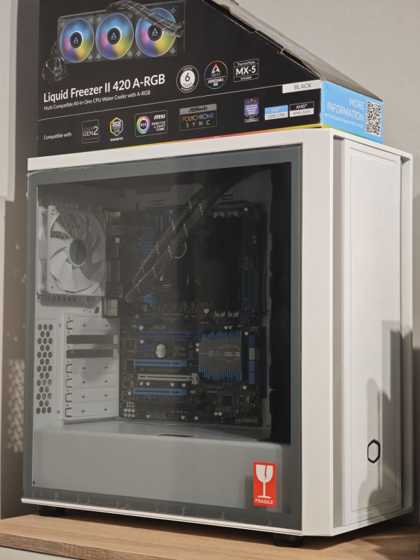 MasterBox 600 Lite tűnt a legolcsóbb 420-as AIO-val kompatibilis kuckónak - noha az LF II 420 éppen 1mm-rel hosszabb, mint amit a ház támogat, de gondoltam azt már akkor is beleszorítom valahogy.