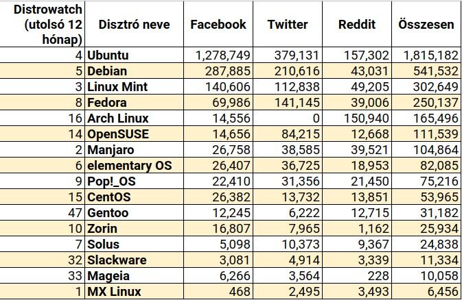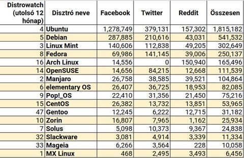 A népszerűségi “rangsor” a Distrowatch elmúlt 12 hónapja alapján a következő: