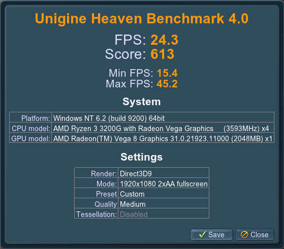 Jobb tesztgép híján a jelenlegi asztali gépemet használtam a teszteléshez, ami alapvetően egy Gigabíte B450M Gaming alaplap, egy AMD Ryzen 3 3200G és 16 GB DDR4 kombinációja.