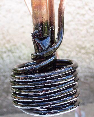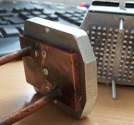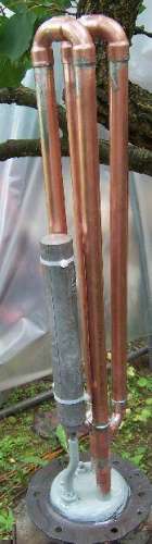 Középen táplálom meg vízzel a rendszert és középen is gyűjtöm össze a felmelegedett folyadékot. A következő képen látható villa alakú rézcső a szétosztó illetve az víz összegyűjtő. (A jobb oldalán látható réz villa a betápláló.)