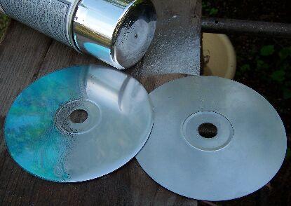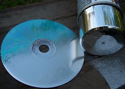 A jobb oldalon látható CD lakkozás nélkül készült (tehát csak a króm spay-vel kezeltem), a bal oldalinak a jobb oldala folyékony lakkra történt festéssel készült, a bal oldala csak lakkozva van.