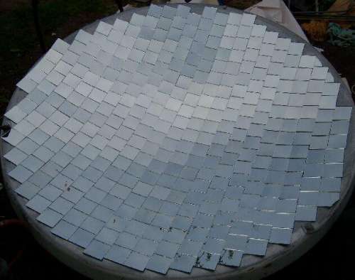 Kb. 20db lapocska maradt ki, így nagyjából 360db 6x6cm-es tükörlap fért rá az antennára.