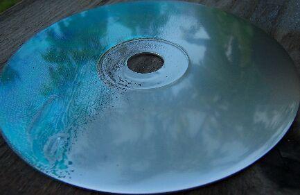 A következő kép felső részén a festett lakkos CD látható, az alsó csak festéssel készült.