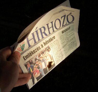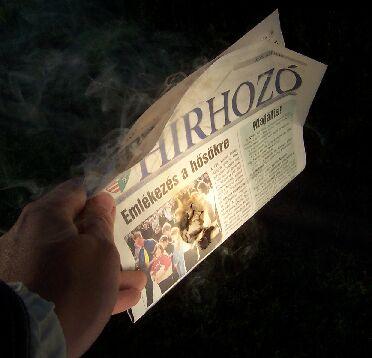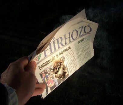 A fókuszponthoz közelítve azonnal megbarnult a sötét részen az újságpapír: