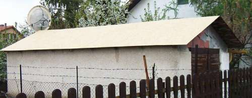 Adott egy öregecske déli fekvésű garázs tető. Anno palával burkolták be, amire a szerelés során nem igen lehet rálépni, ezért az egész tetőt beburkoltam OSB lappal.