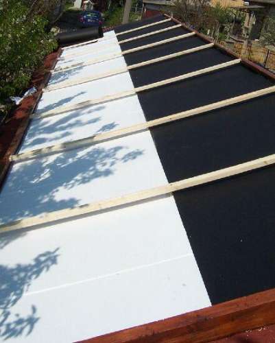 A déli oldalra építettem egy 8x2 méteres fa keretet. Ebbe párazáró fekete fóliát tettem, majd egy réteg hungarocellt raktam le. A fóliát lényegében azért tettem le, hogy ha mégis beszivárog valahol a víz, akkor be menjen tönkre az OSB lap. A hungarocellt pedig azért építettem be, mert azt a meleget, amit összegyűjtök majd nem szeretném a tetőtér irányába közvetíteni. Nyílván a hungarocell vastagsága javítja a hatásfokot, én 2cm vastagot vásároltam.