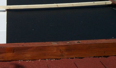 A fa keret alját Bonomit nevű anyaggal vastagon bekentem, így a csapadék nem csuroghat be. A Bonomit kb. olyan mint a bitumen. Egyébként a fa keret megépítése és a hungarocell + kátrány papírral történő kitöltése megint csak egy napig tartott.