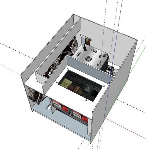 A terv, a légáramlás olyan irányba terelése, hogy az minél több alkatrészt járhasson be.