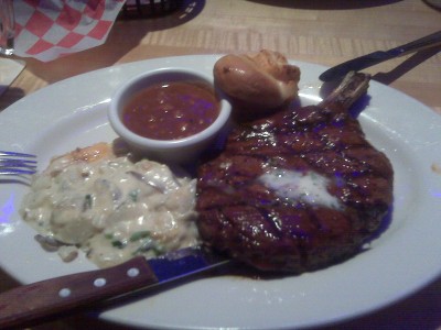 Tesóm hétfő óta Texasban van. Ma hajnalban küldött egy e-mailt, lefényképezte a vacsoráját, egy kb. 70 dekás steak-szeletet.