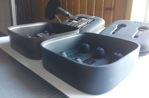 Az alábbi képeken szembetűnik némi különbség. A Piston II-höz járt egy minőségi csipesz, mellyel a mikrofont kényelmesen be tudtuk állítani a megfelelő szögbe a ruhánkra cuppantva. Sajnos az utód nem kapott, de ennek egyszerű magyarázata van, amit később meg is írok. A másik apró eltérés a dobozok magasságában és súlyában keresendő. A Piston 3 doboza alacsonyabb pár milliméterrel, vékonyabb és könnyebb is.