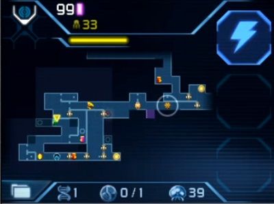 Az eredeti Game Boy rész nagy hiányossága a térkép nélküli navigálás volt, de a későbbi részekben is váltogatnunk kellett a térkép és a játék képernyője között. A Samus Returns esetén mindez a múlté, hiszen a játékot magát a felső- a térképet és a státusz információnkat az alsó képernyőn követhetjük egyidejűleg. A koncepció a létező legkényelmesebb és legtökéletesebb megoldás, de kell is a sűrű lepillantgatás az óriási pályák miatt. Kis ikonok jelzik például a mentési pontokat, a chozo ereklyéket, vagy a már elpusztult metroidokat. De fontos információ az aktuális életerőnk, a kiválasztott fegyver és speciális képesség is. A még életben maradt metroidok számát legalul láthatjuk.