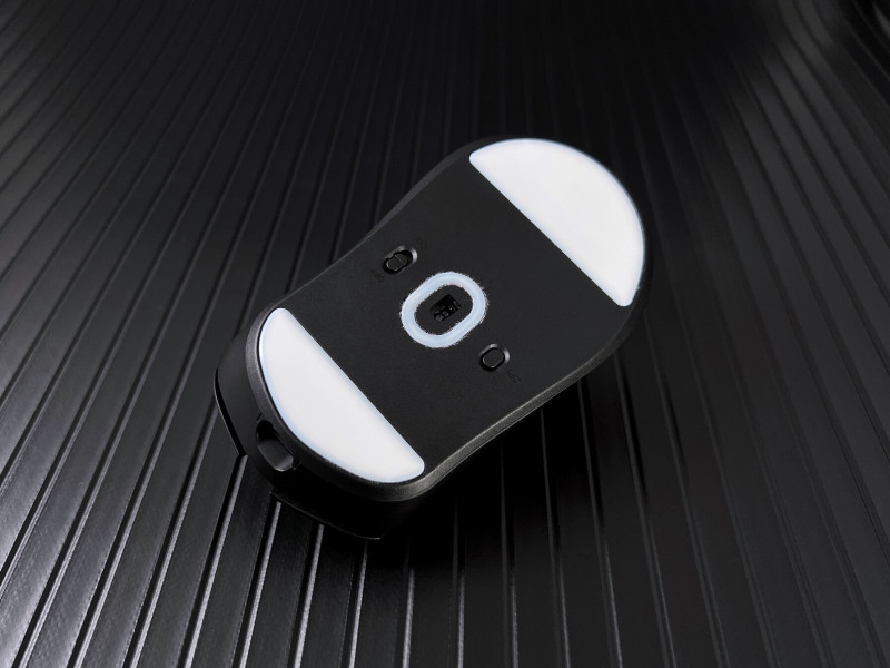 A vékony PTFE talpak ultragyorsak, lekerekített sarkok akadásmentesen siklanak. Az egér alja a Mayával ellentétben teljesen zárt így biztosan nem megy bele por. Nem bonyolították túl az alsó részt, egy ON-OFF kapcsoló és egy DPI váltó gomb található rajta.