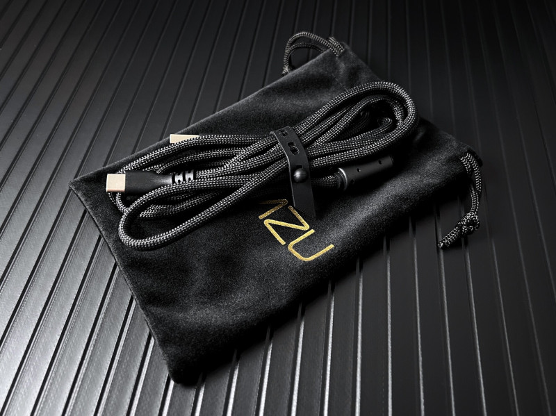 Kompakt doboz: egér, 8K dongle, paracord kábel, grip tape, extra PTFE talp szett, hordtáska. Nagyon jól eltalálták ezt a prémium hatású fekete-arany kombinációt.