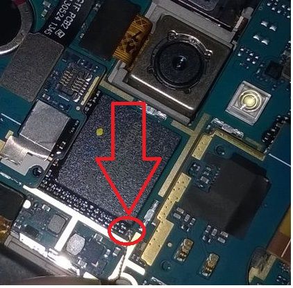 2., A telefonon keressük meg az IC alatt lévő 3db SMD kondenzátort+1 üres helyet, amit majd érintgetni fogunk.