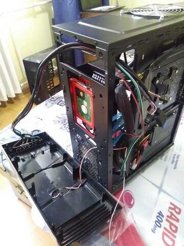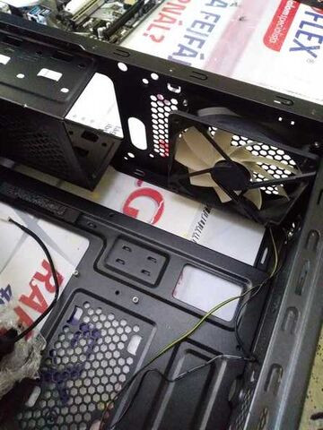 Így bő ujjnyi hely lett a levegőnek, pont elég. Előre egy 120 mm-es termal kontrollos ventillátor került, ez 530 rpm forog terheletlenül, hangja nincs, de levegőt szállít.![]()