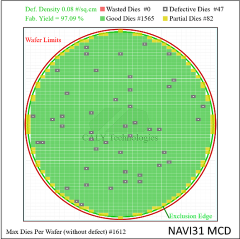 Navi31 MCD: 1565 / 1612 hibátlan chip (97% yield), 47 defektív chip