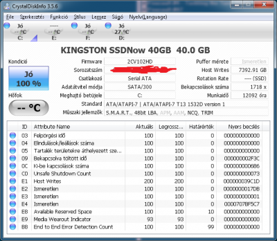 Ez az SSD azóta is megvan. A Win7 van rajta a programjaimmal együtt. A kondíciója pedig: