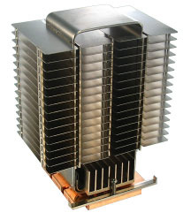 Ez a nem túl ritka, de korántsem mindennapos teljesen passzív, hőcsöves hűtő a Thermaltake Fanless 103. Igazán impozáns és mutatós darab, így nem hiányozhat a gyűjteményemből sem. Valljuk be, senki nem a teljesítménye miatt vette annak idején... Passzív üzemmódban alacsonyabb órajelű P4 procik hűtésére volt maximum alkalmas egy jól szellőző házban.