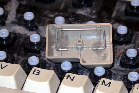A billentyűzet még csúnyább volt. Szinte filccé állt össze a gombok alatt a mocsok. A gombokat leszedtem a helyükről, hogy rendesen ki tudjam pucolni. Nagy többségét kézzel is sikerült lekapni, de volt amelyik alá lapos fejű kiskanállal nyúltam be két oldalról. Nem izomból, hanem ésszel csinálva semmi sem tört el és csak egy rugót kellett keresnem hosszabban. Érdemes figyelni, mert mindenáron szökni akarnak és elég nehezen észrevehetőek.