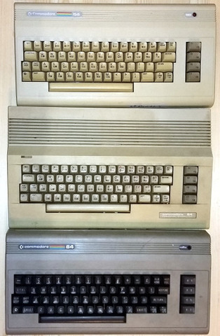 A három szériát egymás mellett is lefényképeztem. Az első széria szép barnás, sajnos a kép ezt nem adja vissza. A C és G széria sokkal világosabb, vajszínű. Ez a színváltás a 1541 verziókon (floppy meghajtó) is visszaköszön. Persze ez a gyűjtemény messze nem teljes. A Commodore gyártott még legalább tucatnyi alverziót, mert mindent mindennel összelapátoltak, csak haladjon a termelés. Csak pár a teljesség igénye nélkül: Aldis gépek, első széria VIC billentyűzettel, C64C különböző alaplap verziókkal...