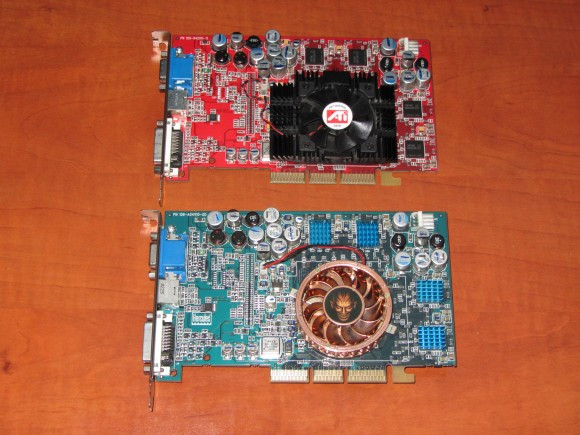 A legelsőként beszerzett ATI kártyám, a 9700 Pro helyett (ami hibás volt, de szerencsére visszavette az eladó) most érkezett két másik is. Az alsó kártya egy Hercules 3D Prophet 9700 Pro, igen szép (és gondolom elég ritka) példány. A felső pedig egy ref 9700 (Pro?) ami szintén 9700 Pro órajeleken jár viszont csak Radeon 9700 van írva a hátoldalon lévő matricán. Lehetséges lenne, hogy ez egy "sima" (nem Pro) 9700, amire valaki ráflashelt egy Pro BIOS-t? Ennek nagyon örülnék, mert akkor még egy tételt kihúzhatnék a listámról. Aki látott már nem Pro 9700-est az megmondhatná, hogy van-e bármi különbség a nyákon a Pro-hoz képest, illetve akinek van egy biztosan Pro 9700-ese, az megnézhetné, hogy az ő kártyáján van-e Pro felirat a matricán?