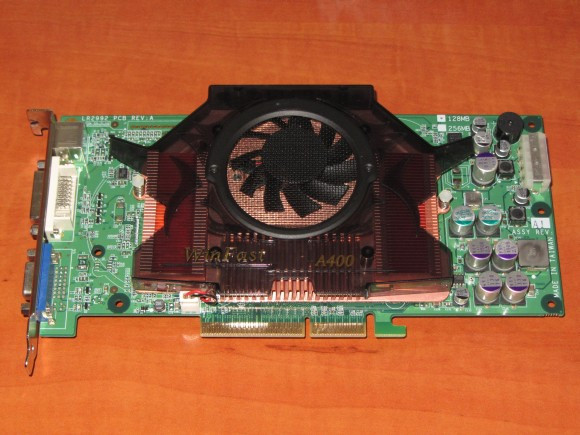 A nemrégiben a tesztek alatt megbízhatatlannak bizonyult Gainward 6800 LE helyére egy Leadteket sikerült szereznem. Örülök neki, mert mint gondolom már eddig is kiderült, kedvelem a Leadtek kártyákat. Ráadásul volt is ilyenem anno (csak nem LE hanem sima 6800 változatban) ugyanezzel a lepény hűtéssel felszerelve, ami lényegében a brutális A400GT hűtésének összenyomott, költségcsökkentett változata. Azért így is van benne anyag bőven, nem spóroltak a rézzel és heatpipe-ot is alkalmaztak. Kicsit bután néz ki, hogy a ventilátor nem a burkolaton kivágott lyuk alá esik mint a nagytestvér hűtésén, de ezért a dizájnbeli malőrért bőségesen kárpótol minket a hátoldali vaskos (és nagyrészt funkció nélküli) réz hűtőborda.