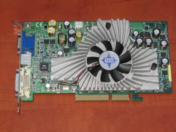 Ahogy az NVIDIA kártyáknál, úgy ATI fronton is voltak egyedi kártyák a Medion gépekben, szintén az MSI által készítve. Ez egy Radeon 9800 XXL, mely órajeleit tekintve a 9800 Pro és a 9800 XT között van. Hűtése méretes, ám nem túl dekoratív, a tápcsatlakozó pedig szokatlan helyre került.
