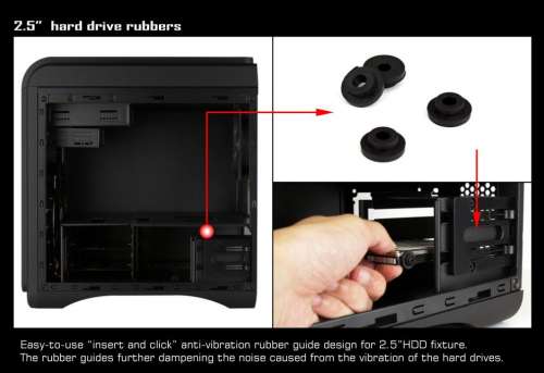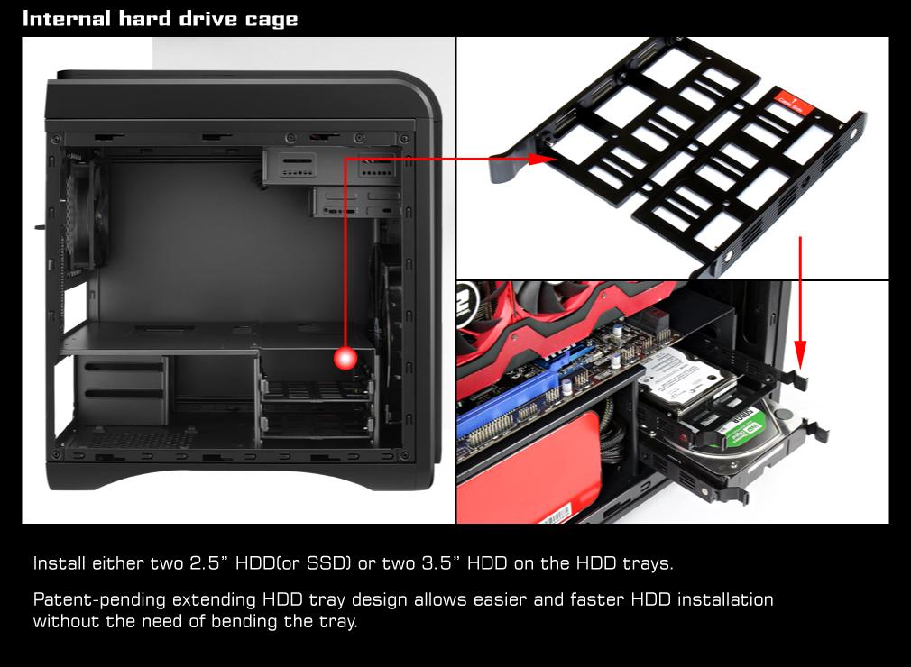 A 3,5”-os HDD-k rögzítését mondhatni szokásos módon lehet kivitelezni (sajna nem volt módom tesztelni 3,5”-os HDD-vel):