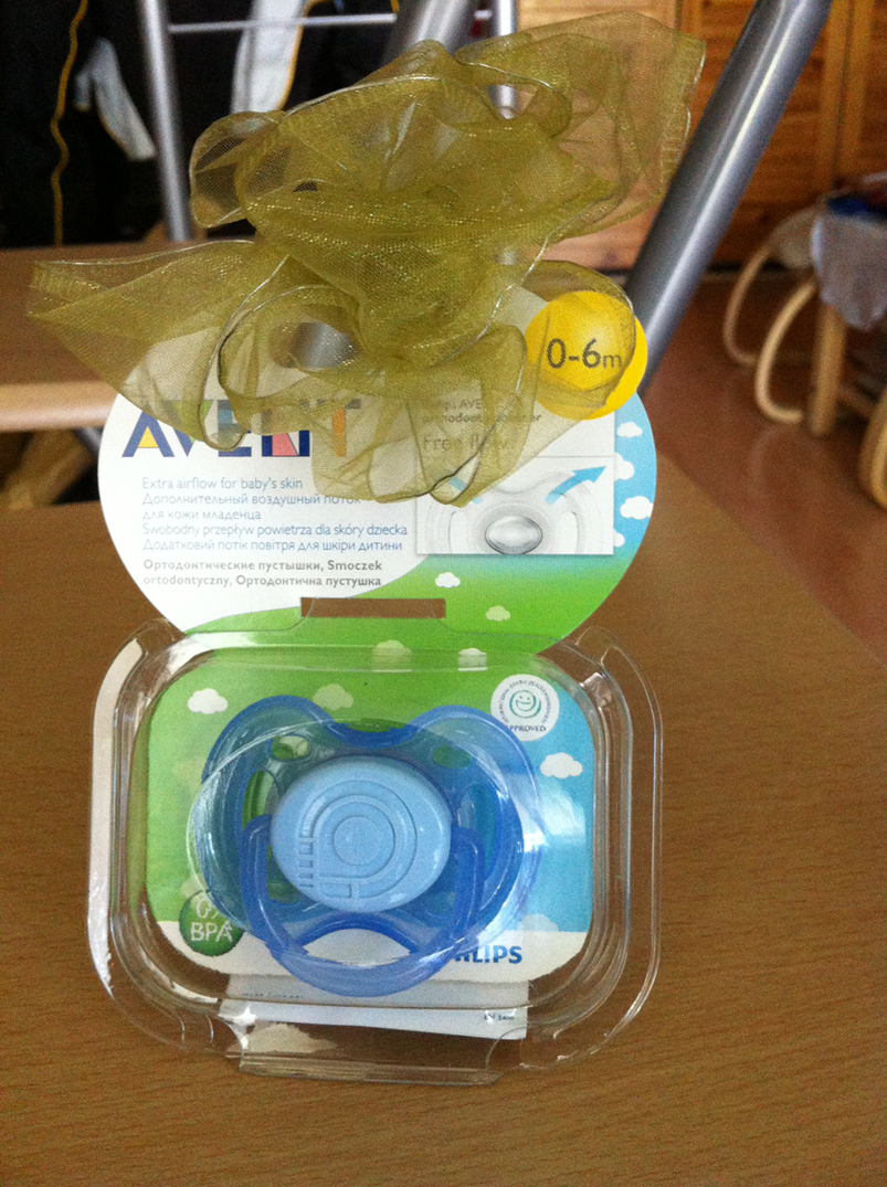 Egy szép pénteki napon feleségem meglepetést szervezett nekem. Elhívta a legjobb barátaimat, hogy egy kis piknik keretében köszöntsenek meg, öregedésem egy újabb állomásán. Fantasztikus dolgokkal leptek meg. Melyek közül az egyik volt ez a cumi. Igazi 1for2 ajándék mert így le lett tudva az születendő gyermek ajándéka is.