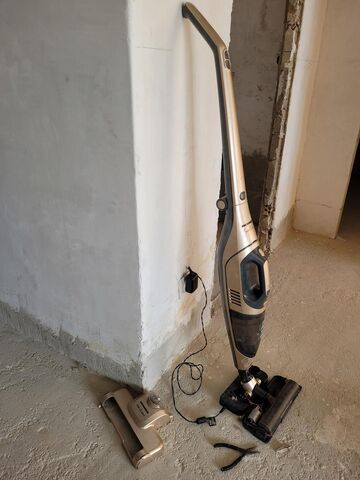 Tehát megvolt a porszívó maga, randa, de amúgy elfogadható állapotban; tehát kopott, a portartály törve, de rajta marad, a ház sehol nincs törve. Megvolt a talpa, de a tápja nem.