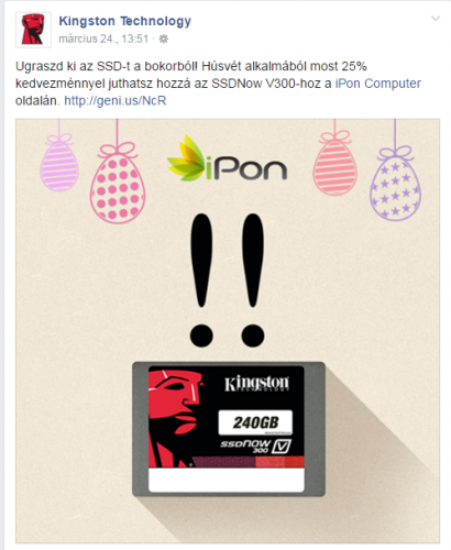 A hirdetés szerint az iPon-nál a Kingston SSDNow V300 25%-kal olcsóbb