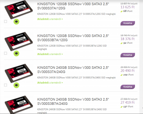 Ne bánkódj miatta, vannak közte elég rossz szériák! Vettem egyet, de sebességteszt után már ment is vissza a boltnak... 500/500 helyett 120/120 körül ment, vettem helyette egy Intelt, ami tudja ténylegesen is az 500/500-at. Egyik haveromnak is van egy 120-as V300-asa, de az is csiga lassú. Ellenben a HiperX Fury az jó!