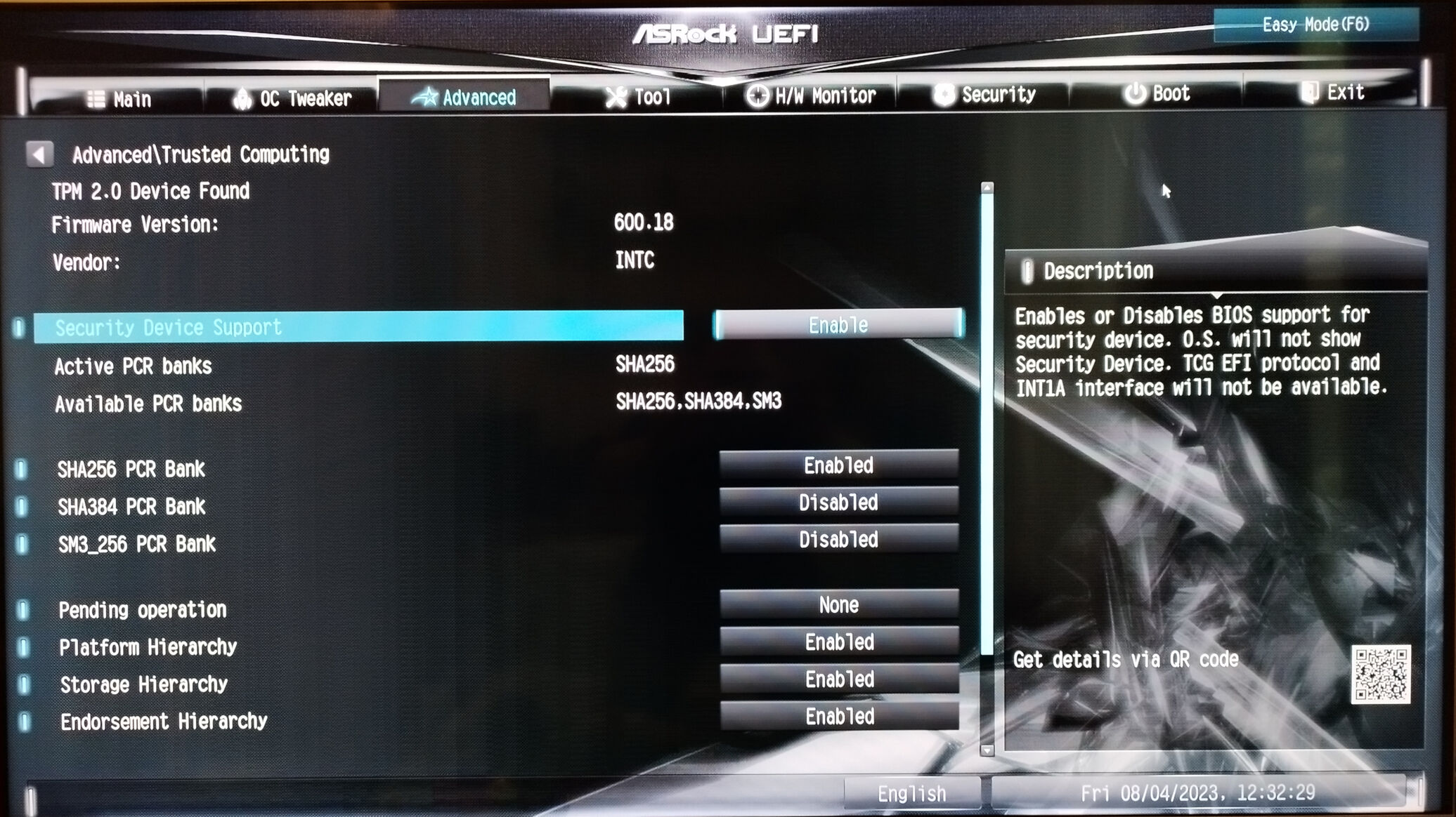 Mivel a TPM chip kompatibilitása volt még egy "kulcs kérdés", ezért gyorsan haladó módra raktam, megkerestem a megfelelő menüt és... Ott volt. Szuper!