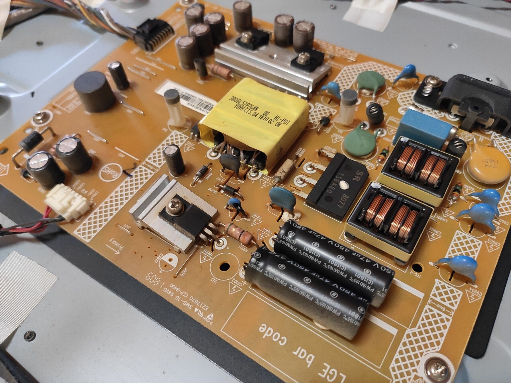 Szia mindenkinek. Ma délelőtt kapcsoltam be mindent, némi zenehallgatás céljából, ment a pc, kattant a relé az erősítőben, méla buff a mélynyomótól, bevillant a tévén a logó, aztán meg egy hangos, éles pukk a tévéből, némi tűzijáték kererében, amitől frászt kaptam. Sebtében áramtalanítottam az elsötétült képernyőt, majd miután láttam hogy nem füstöl, nem akaródzik kigyulladni, hát nekiálltam szétkapni, mi is volt ez.