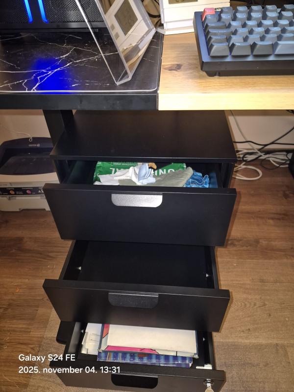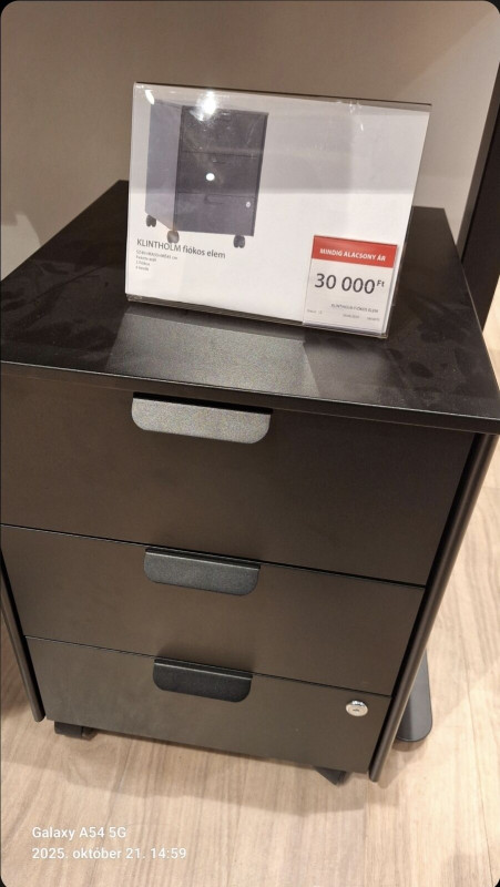 Pár nappal később bementem a hajdúszoboszlói JYSK-be forgószéket nézni - egyébként abból is újat rendeltem Aloha Ergonomic Office Chair – Haworth Store - International - de ezt csak rutinból tettem, hiszen a székes topicban, már megvolt, hogy milyen irányba induljak el. Amint beértem, indultam a székek felé, és akkor pillantottam meg a KLINTHOLM 3 fiókos elemet. Egyből megtetszett.