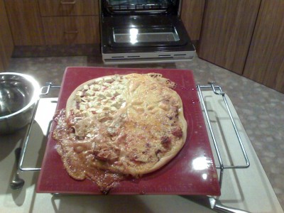 Amíg a kígyókbékák sültek, elkészítettem a másik pizzát.