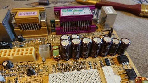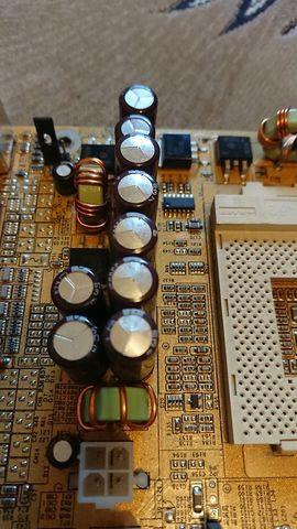 Donornak egy chipsethibás Abit NF7-et választottam, amin kitűnő minőségű Rubycon kondik voltak:
