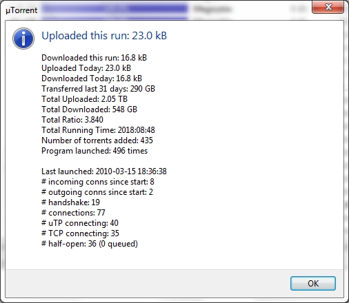Szintén április környékén indított számlálóval nálam 2.75 TB a feltöltés úgy, hogy nyáron nem töltöttem fel semmit, előtte meg orrba-szájba ment a feltöltés, szeptembertől viszont már elég lájtosan ment (tehát nem egész nap). Február végéig 20/10-es nettel, onnantól 30/20-assal. Beload-on így is van több, mint 4 TB feltöltésem, meg nemrég regisztráltam Ncore-ra is, ott még elég kevés ment fel.
