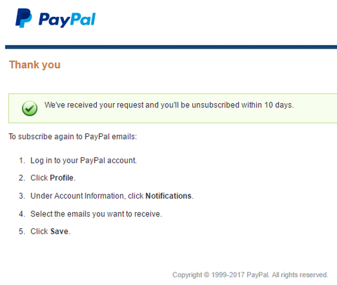 Most untam meg a Paypal hírleveleit, úgyhogy nekiálltam keresgélni az unsubscribe linket az emailben, nagy nehezen meg is találtam.
