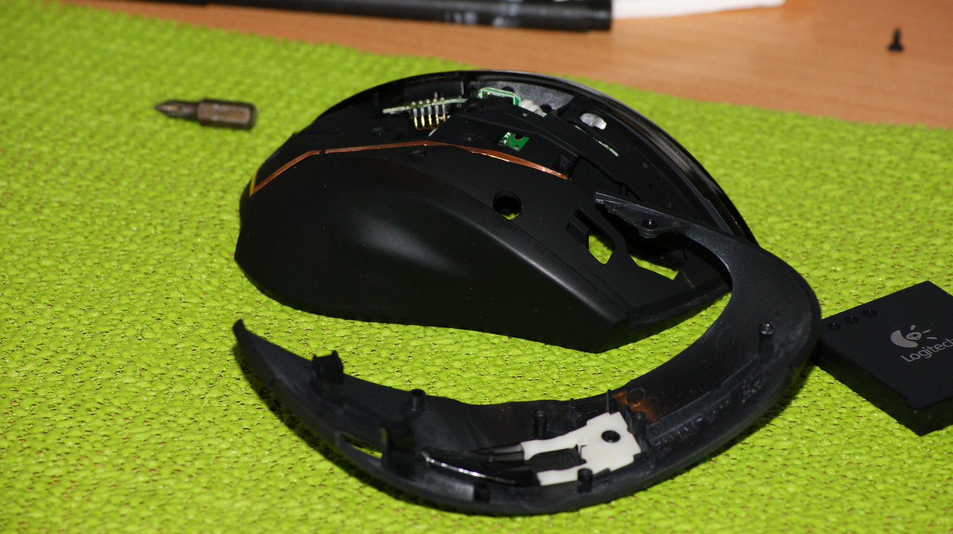 Körülbelül 3,5 év után úgy gondoltam, hogy ráférne már egy kis pucolás "belülről" is a Logitech MX Revolution egeremre. A bal, jobb kattintó gombok alá be volt szorulva a szennyeződés és volt amikor nem vagy csak nagyon lassan akart feljönni a nyomó felület egy klikkelés után.