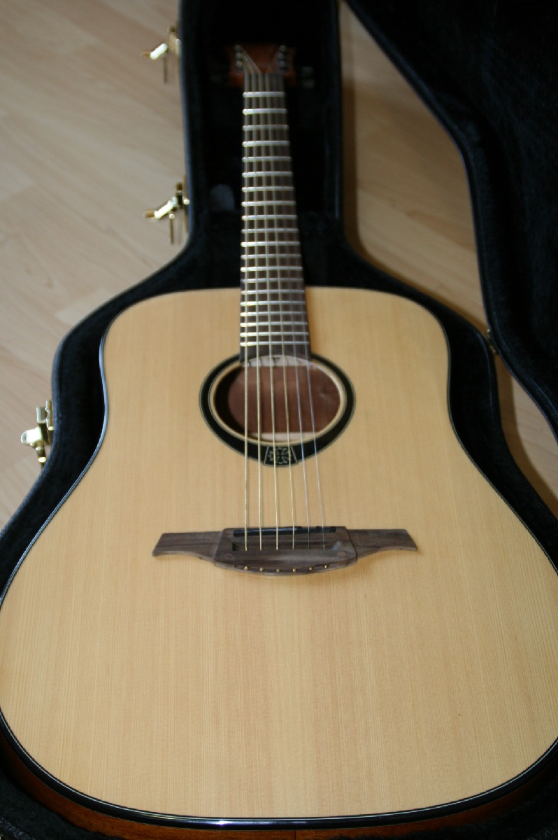 Megérte a hatezer forint pluszt. Masszív mahagóni konstrukció, "mézszínű" mahagóni nyakkal, oldallappal és hátlappal, lucfenyő fedőlappal. Fekete hardverek, indonéz rózsafa fogólap és húrláb, gyári Elixir húrok. A rengeteg mahagóninak és rózsafának köszönhetően a hangja mély tónusú, a magasak kiemelkednek belőle. A 11-es Elixir húrokon élmény játszani (bár annyi pénzért legyen is az!), sem az akkordok, sem a szólózás nem fáraszt, köszönhetően az alacsony húrmagasságnak és a kiváló formájú nyaknak.