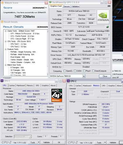 Azonos konfiggal van 3DMark (2001 , 03 , 05 , 06) tesztek teljes mértékben kihasználva, minden hardver a gyári értéken ! CPU az a "konfiguráció" alatt található 2 példány, és látszik a különbség... nem is kicsit ! (7800GS és 7800GS+ esetében nincs sok+ változás)
