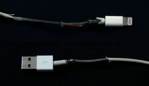 Nem telik el fél év, és a szép fehér Apple kábelünk először szürke, majd sárga lesz, végül pedig, ahogy az alábbi kép mutatja, egészen extrém külalakot is ölthet.