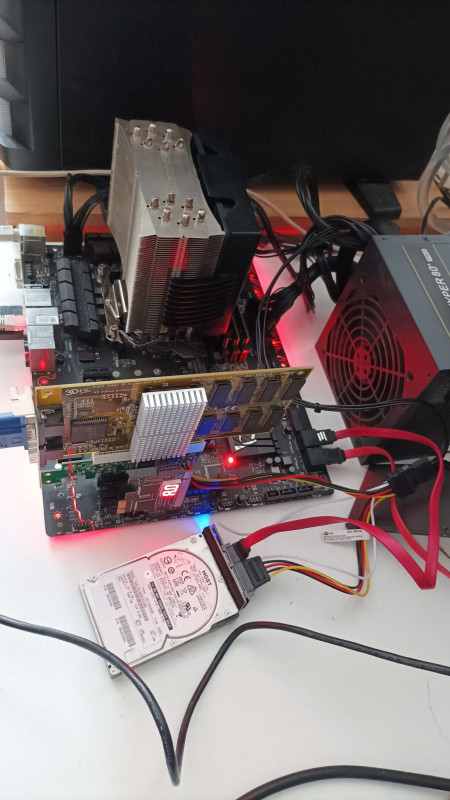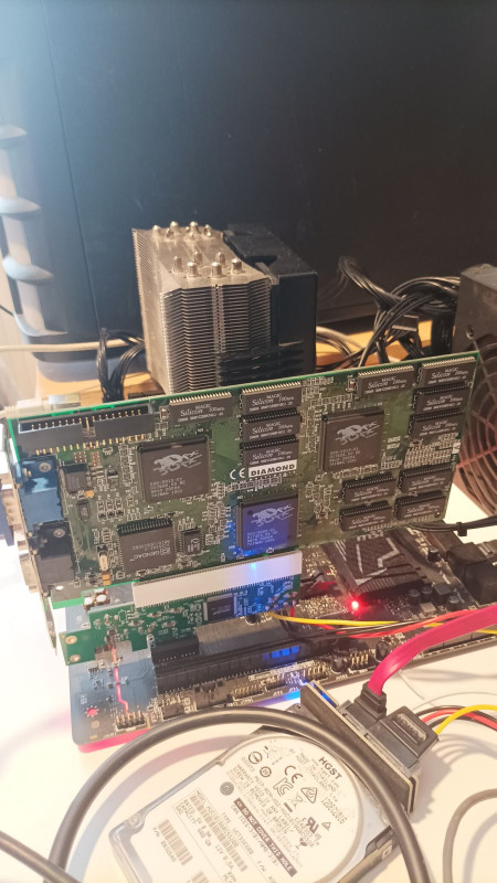 A Voodook tesztnek egy pcie1x-pci adapterbe mennek, magát a windows desktop képét a prociban lévő HD630-as adja majd, monitor dupla bemenetes (HDMI-DVI adapter és Dsub) így tudok váltani mivel az alaplapon nincs dsub csati ezért az klasszikus átkötő kábel itt nem megoldható.