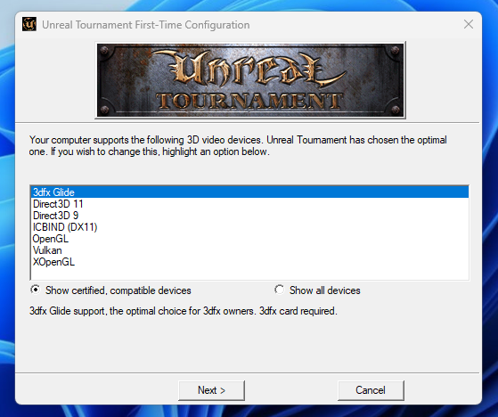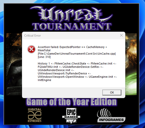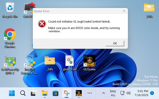 Amit meg kell oldanom hogy működjön az unreal is. Valami olyasmi van hogy a 16bites szín nem működik windows11-nél szerintem és a váltás zavarja be a játékot. Vagy talán itt is jelentkezik az hogy gyors procival nem indul. Lehetséges hogy nem egyformán működnek a játékok amikor válltani kell a voodoo-ra.
